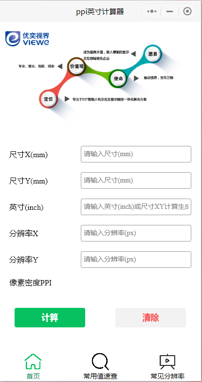 优奕视界 屏幕PPI在线计算器