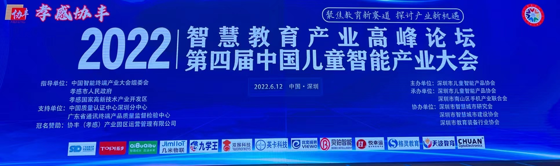 6月12日,“2022年智慧教育产业高峰论坛暨第四届中国儿童智能产业大会”在深圳举行,大会的主题是聚焦智慧教育新赛道,探讨产业新机遇。来自深圳及其周边儿童智能暨智慧教育产业相关的近300位企业家和行业精英参加了会议。优奕视界作为核心单位受邀出席并做了护眼健康新技术分享。